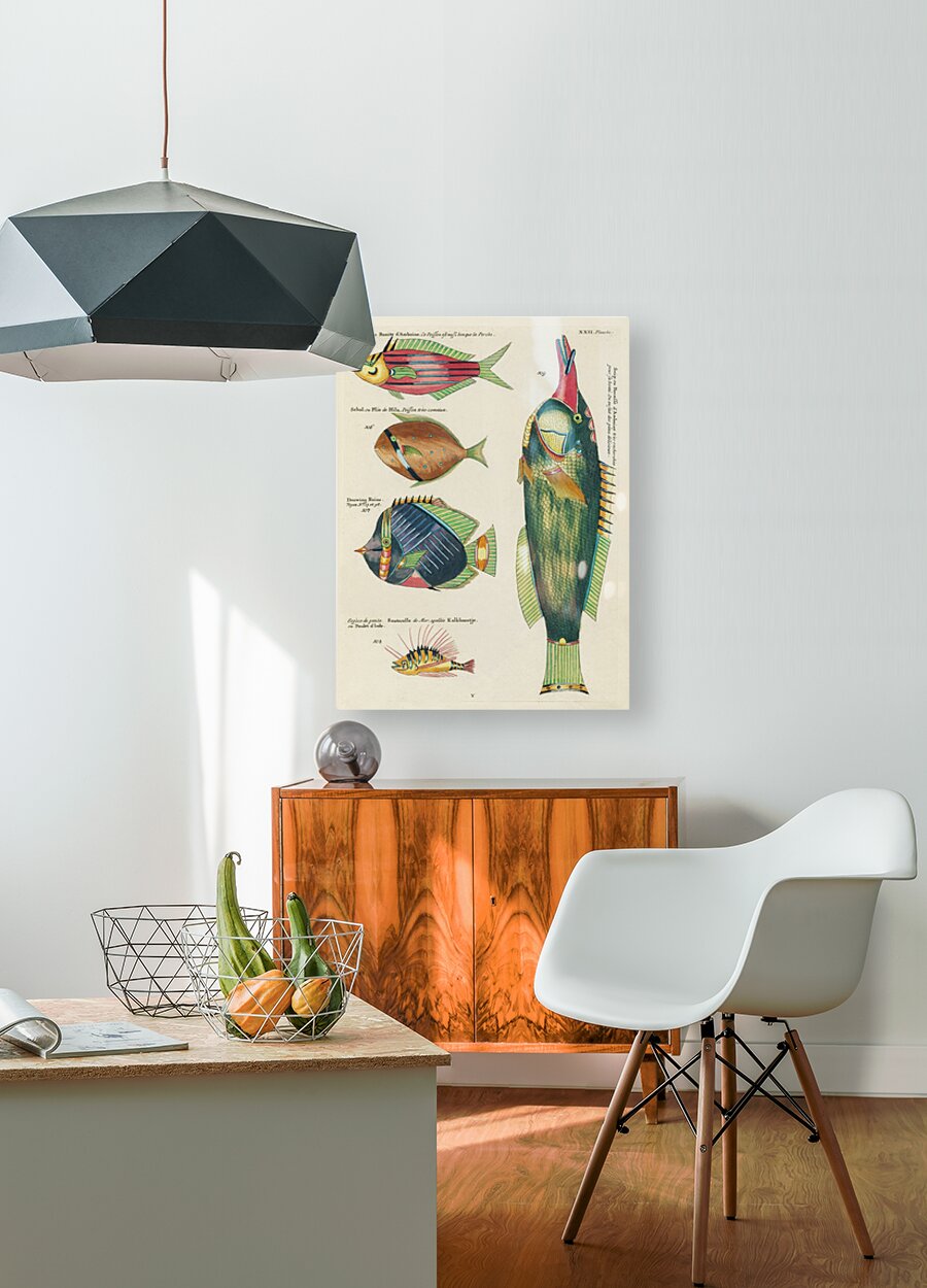 Colourful and surreal illustrations of fishes found in Moluccas Indonesia and the East Indies by Louis Renard 1678 -1746 from Histoire naturelle des plus rares curiositez de la mer des Indes 1754. Canvas print