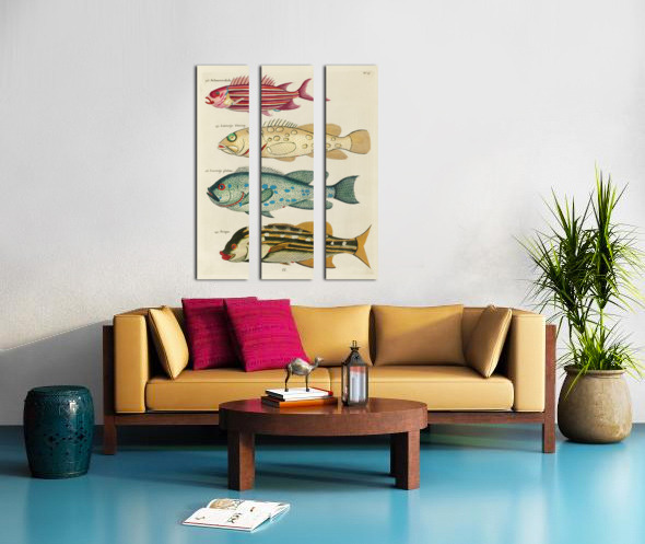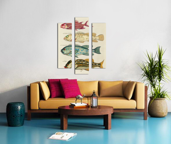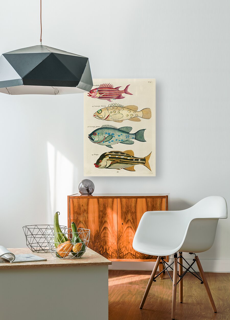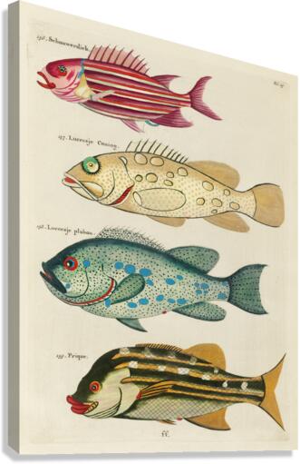 Colourful and surreal illustrations of fishes found in Moluccas Indonesia and the East Indies by Louis Renard 1678 -1746 from Histoire naturelle des plus rares curiositez de la mer des Indes 1754. Canvas print