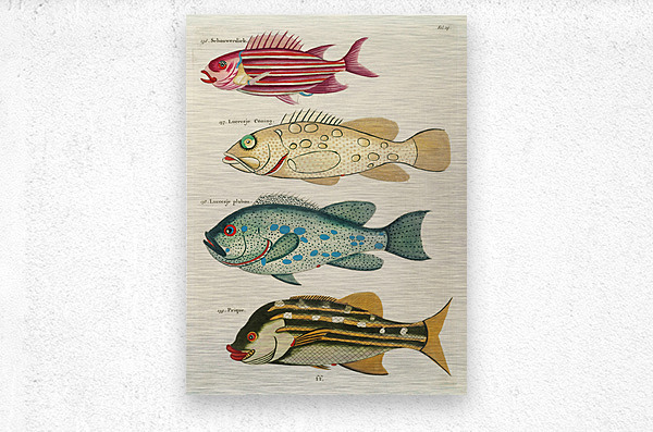 ABOUT THIS ARTWORK: COLOURFUL AND SURREAL ILLUSTRATIONS OF FISHES FOUND IN MOLUCCAS INDONESIA AND THE EAST INDIES BY LOUIS RENARD 1678 -1746 FROM HISTOIRE NATURELLE DES PLUS RARES CURIOSITEZ DE LA MER DES INDES 1754.