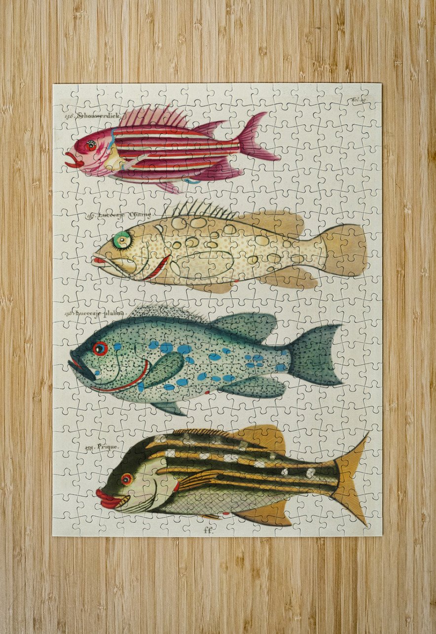 Colourful and surreal illustrations of fishes found in Moluccas Indonesia and the East Indies by Louis Renard 1678 -1746 from Histoire naturelle des plus rares curiositez de la mer des Indes 1754. IStockHistory com Puzzle