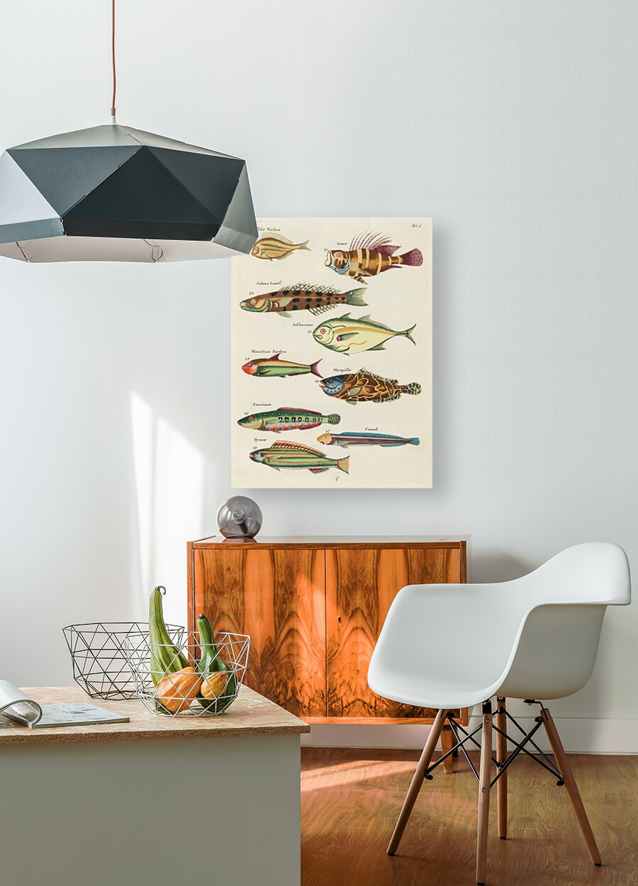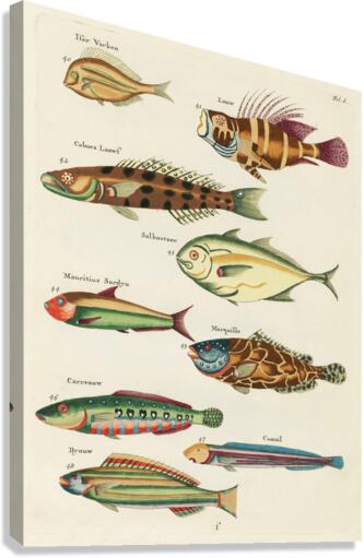 Colourful and surreal illustrations of fishes found in Moluccas Indonesia and the East Indies by Louis Renard 1678 -1746 from Histoire naturelle des plus rares curiositez de la mer des Indes 1754. Canvas print