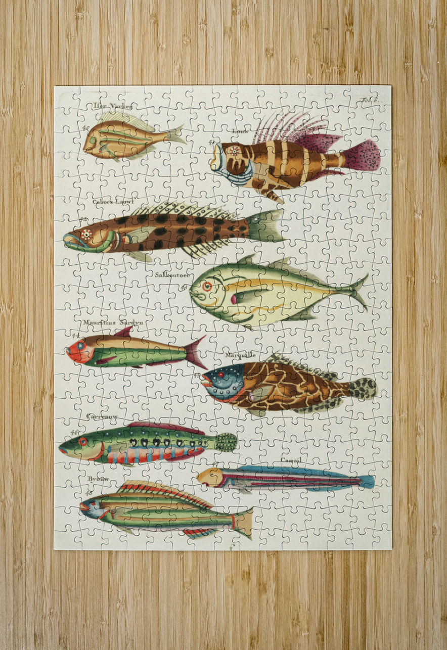 Colourful and surreal illustrations of fishes found in Moluccas Indonesia and the East Indies by Louis Renard 1678 -1746 from Histoire naturelle des plus rares curiositez de la mer des Indes 1754. IStockHistory com Puzzle