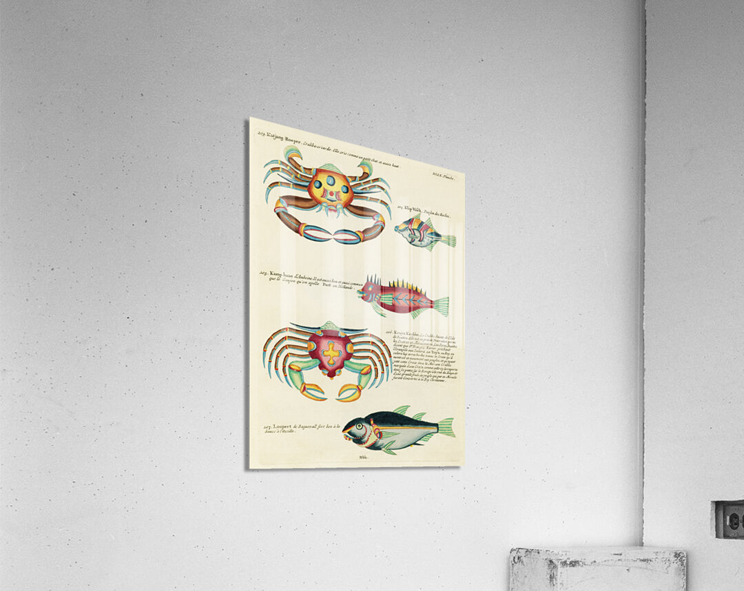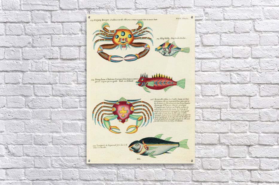 Get this artwork "Colourful and surreal illustrations of fishes and crabs found in Moluccas Indonesia and the East Indies by Louis Renard 1678 -1746 from Histoire naturelle des plus rares curiositez de la mer des Indes 1754." in a framed print.