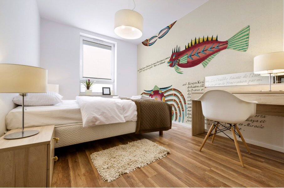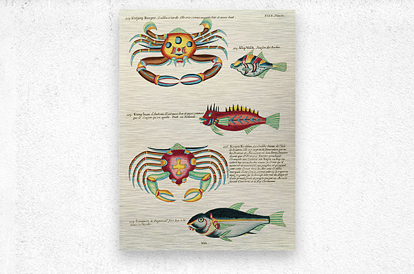 ABOUT THIS ARTWORK: COLOURFUL AND SURREAL ILLUSTRATIONS OF FISHES AND CRABS FOUND IN MOLUCCAS INDONESIA AND THE EAST INDIES BY LOUIS RENARD 1678 -1746 FROM HISTOIRE NATURELLE DES PLUS RARES CURIOSITEZ DE LA MER DES INDES 1754.