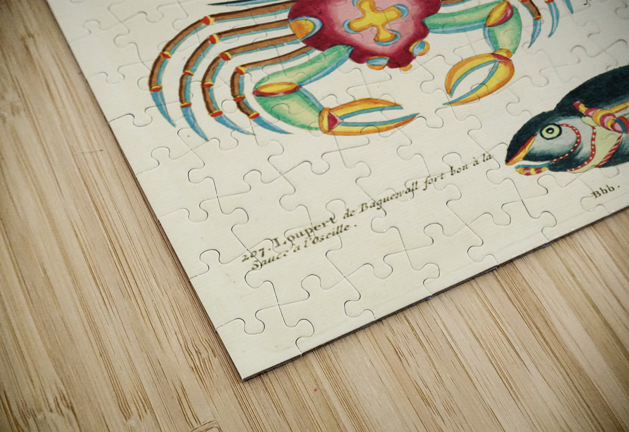 Colourful and surreal illustrations of fishes and crabs found in Moluccas Indonesia and the East Indies by Louis Renard 1678 -1746 from Histoire naturelle des plus rares curiositez de la mer des Indes 1754. IStockHistory com Puzzle printing