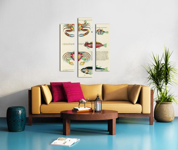 Colourful and surreal illustrations of fishes and crabs found in Moluccas Indonesia and the East Indies by Louis Renard 1678 -1746 from Histoire naturelle des plus rares curiositez de la mer des Indes 1754. Canvas print