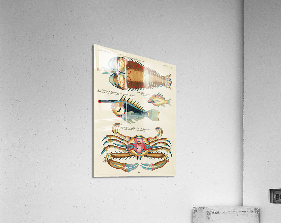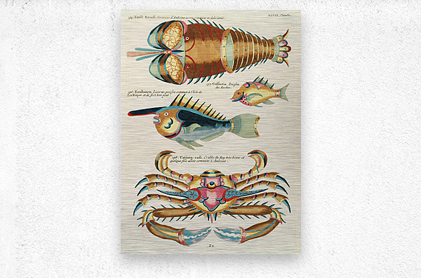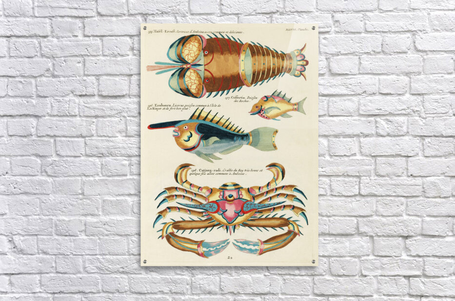 Get this artwork "Colourful and surreal illustrations of fishes lobster and crab found in the Indian and Pacific Oceans by Louis Renard 1678 -1746 from Histoire naturelle des plus rares curiositez de la mer des Indes 1754." in a framed print.
