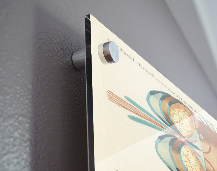 Printed to the edge - Ready to hang - provided with 4 premium polished aluminum stand off ( wall screws and mounting hardware provided ) We suggest a thicker 3/16" acrylic for any size over 42 inches to guarantee a straight acrylic, without curvature