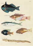 ABOUT THIS ARTWORK: COLOURFUL AND SURREAL ILLUSTRATIONS OF FISHES FOUND IN MOLUCCAS INDONESIA AND THE EAST INDIES BY LOUIS RENARD 1678 -1746 FROM HISTOIRE NATURELLE DES PLUS RARES CURIOSITEZ DE LA MER DES INDES 1754.