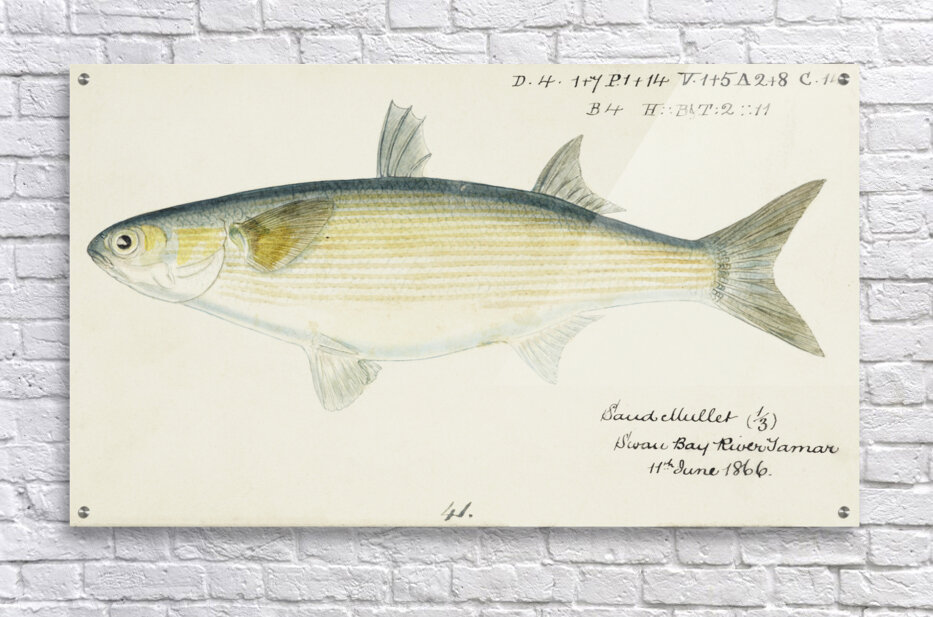 Antique fish myxus elongatus sand mullet South Pacific Fishes by Frank Edward Clarke 1849-1899.  Frame print