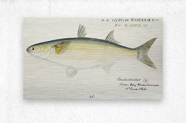 Antique fish myxus elongatus sand mullet drawn by Frank Edward Clarke 1849-1899.