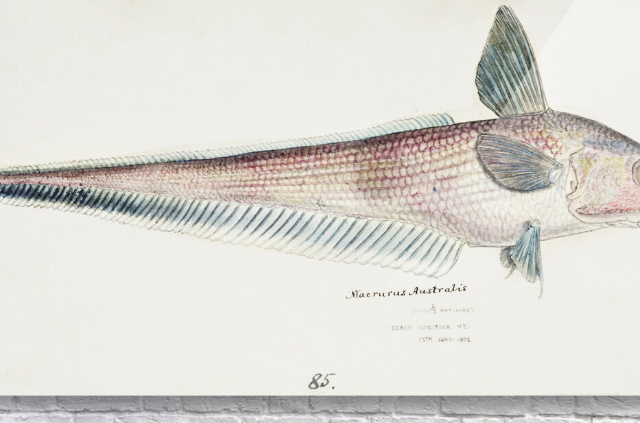 Antique fish Coelorinchus sp NZ : Rattail South Pacific Fishes by Frank Edward Clarke 1849-1899.  Picture Frame Printing