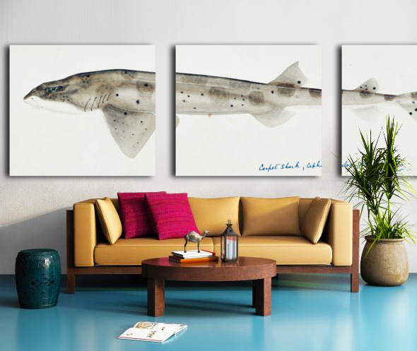 Get this artwork "Antique fish Carpet Shark South Pacific Fishes by Frank Edward Clarke 1849-1899. " in a framed print.