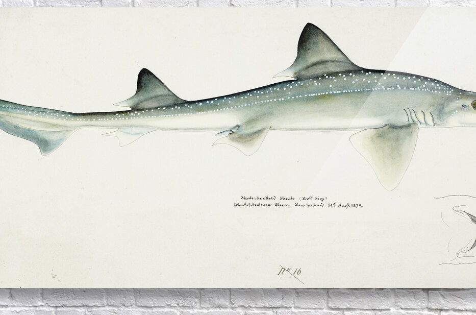 Get this artwork "Antique fish Mustelus Antarcticus shark South Pacific Fishes by Frank Edward Clarke 1849-1899. " in a framed print.