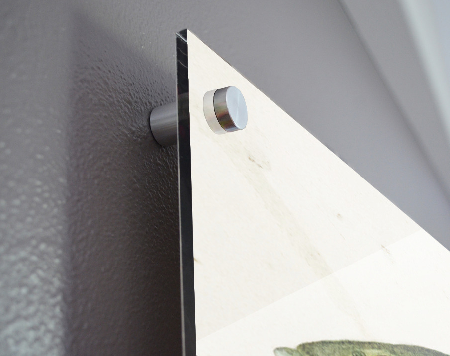 Printed to the edge - Ready to hang - provided with 4 premium polished aluminum stand off ( wall screws and mounting hardware provided ) We suggest a thicker 3/16" acrylic for any size over 42 inches to guarantee a straight acrylic, without curvature