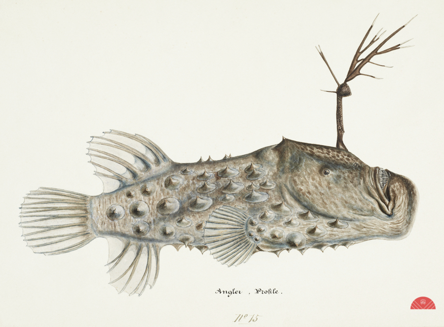 Antique Prickly anglerfish drawn by Frank Edward Clarke 1849-1899.