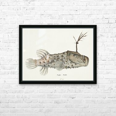 Antique Prickly anglerfish South Pacific Fishes by Frank Edward Clarke 1849-1899.  Frame print