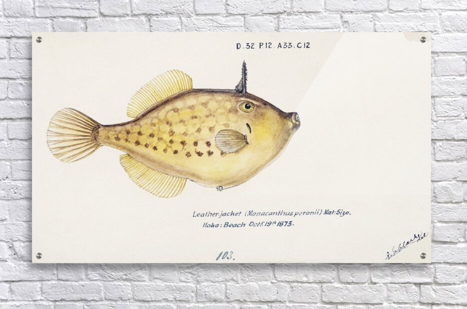 Get this artwork "Antique fish Pseudomonacanthus peroni South Pacific Fishes by Frank Edward Clarke 1849-1899. " in a framed print.
