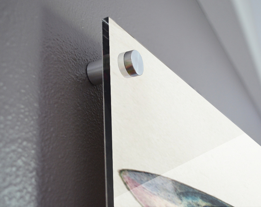 Printed to the edge - Ready to hang - provided with 4 premium polished aluminum stand off ( wall screws and mounting hardware provided ) We suggest a thicker 3/16" acrylic for any size over 42 inches to guarantee a straight acrylic, without curvature
