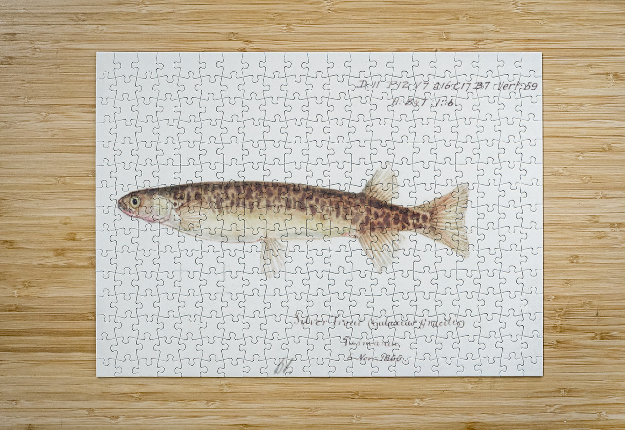 Antique fish galaxias gracilis dwarf inanga South Pacific Fishes by Frank Edward Clarke 1849-1899.  IStockHistory com Puzzle printing