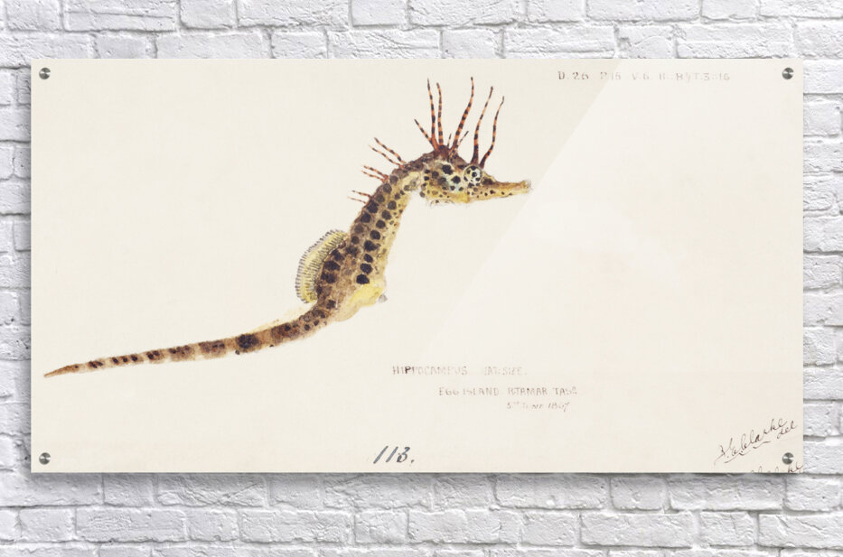 Get this artwork "Antique fish hippocampus abdominalis seahorse South Pacific Fishes by Frank Edward Clarke 1849-1899. " in a framed print.