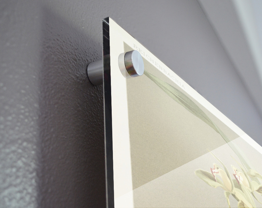 Printed to the edge - Ready to hang - provided with 4 premium polished aluminum stand off ( wall screws and mounting hardware provided ) We suggest a thicker 3/16" acrylic for any size over 42 inches to guarantee a straight acrylic, without curvature