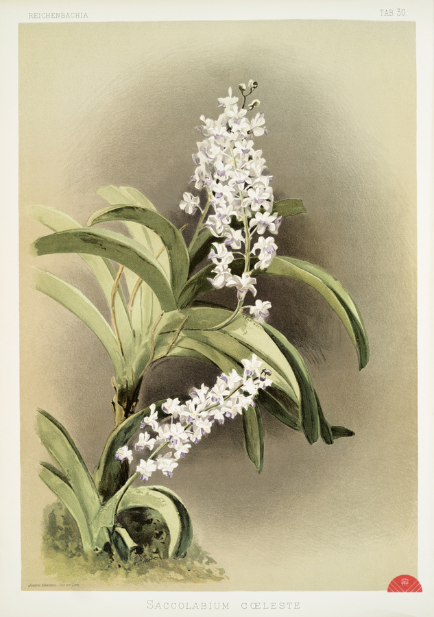 ABOUT THIS ARTWORK: SACCOLABIUM CœLESTE FROM REICHENBACHIA ORCHIDS 1888-1894 ILLUSTRATED BY FREDERICK SANDER 1847-1920.