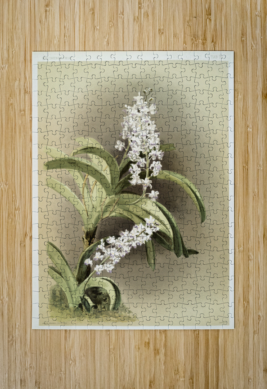 Saccolabium cœleste from Reichenbachia Orchids 1888-1894 illustrated by Frederick Sander 1847-1920.  IStockHistory com Puzzle printing