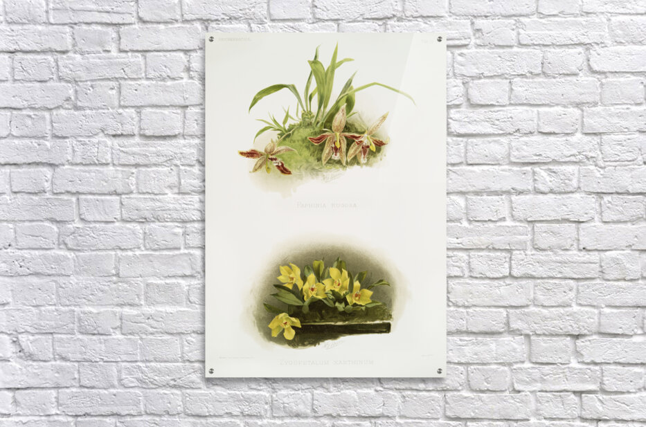 Paphinia rugosa Zygopetalum xanthinum from Reichenbachia Orchids 1888-1894 illustrated by Frederick Sander 1847-1920.  Picture Frame Printing