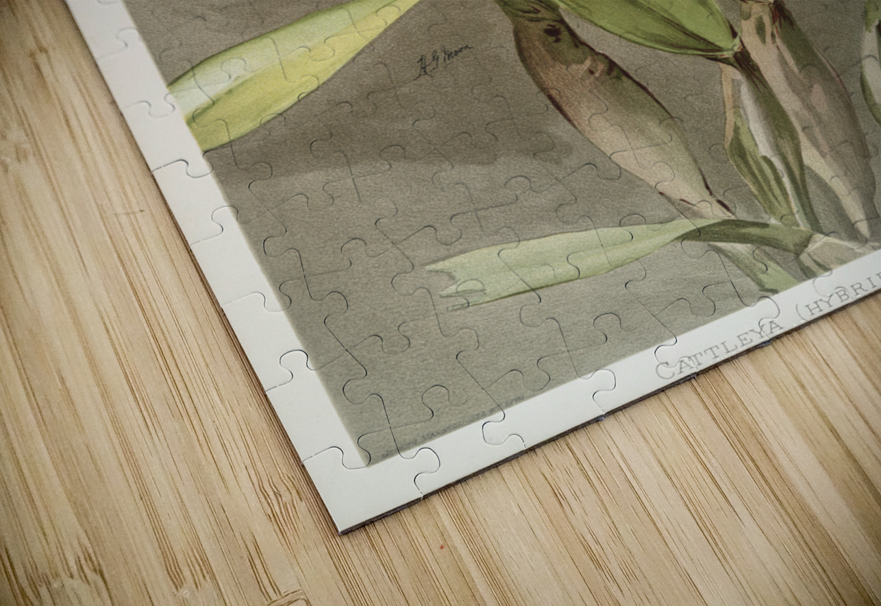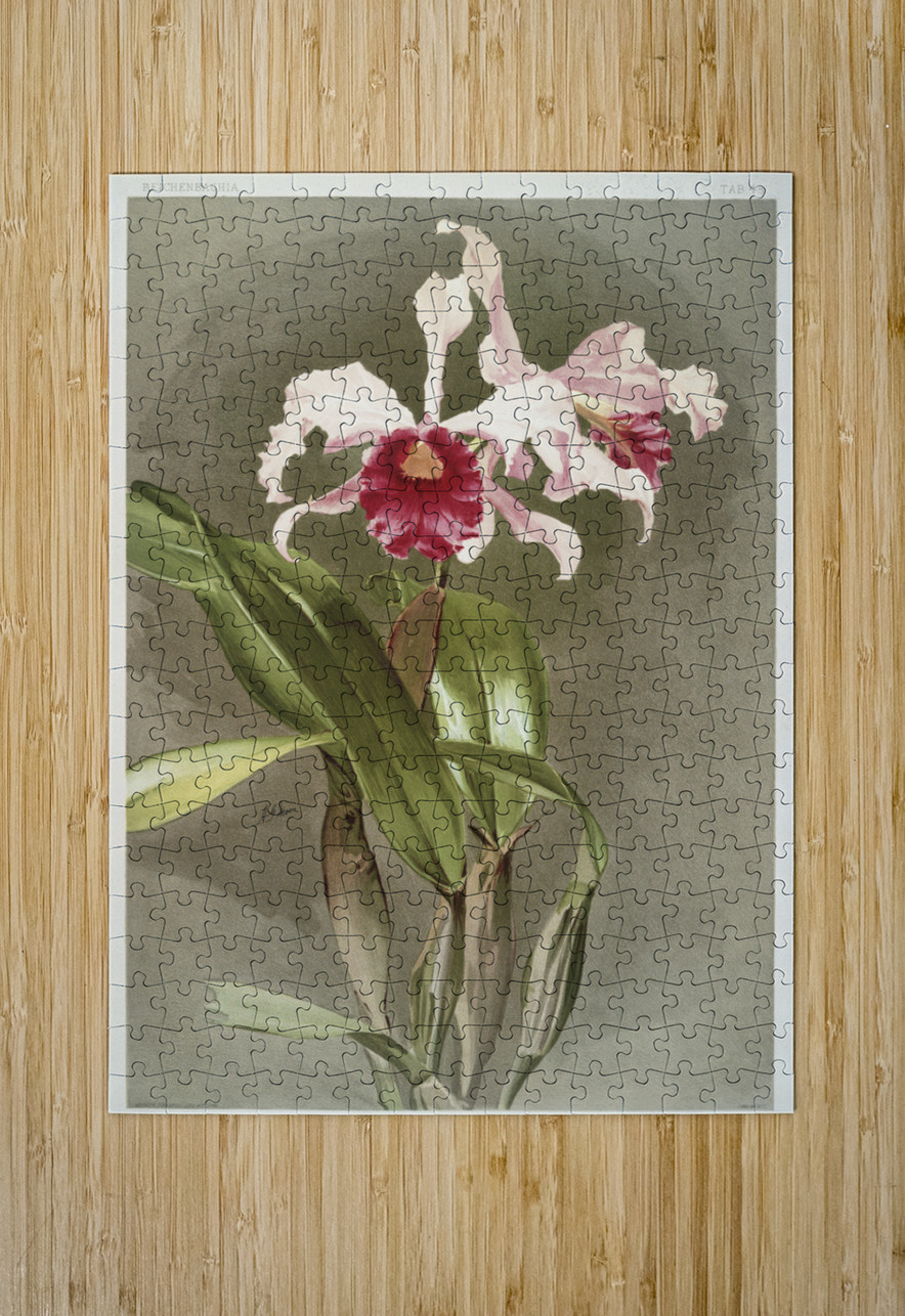 Cattleya hybrida arnoldiana from Reichenbachia Orchids 1888-1894 illustrated by Frederick Sander 1847-1920.  IStockHistory com Puzzle printing
