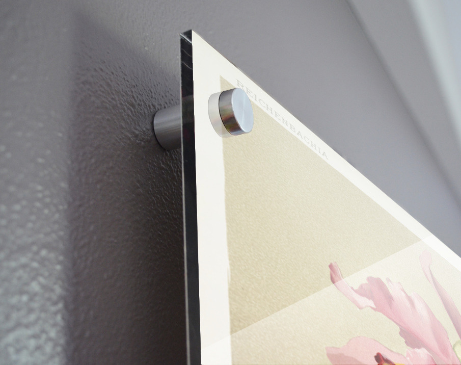 Printed to the edge - Ready to hang - provided with 4 premium polished aluminum stand off ( wall screws and mounting hardware provided ) We suggest a thicker 3/16" acrylic for any size over 42 inches to guarantee a straight acrylic, without curvature