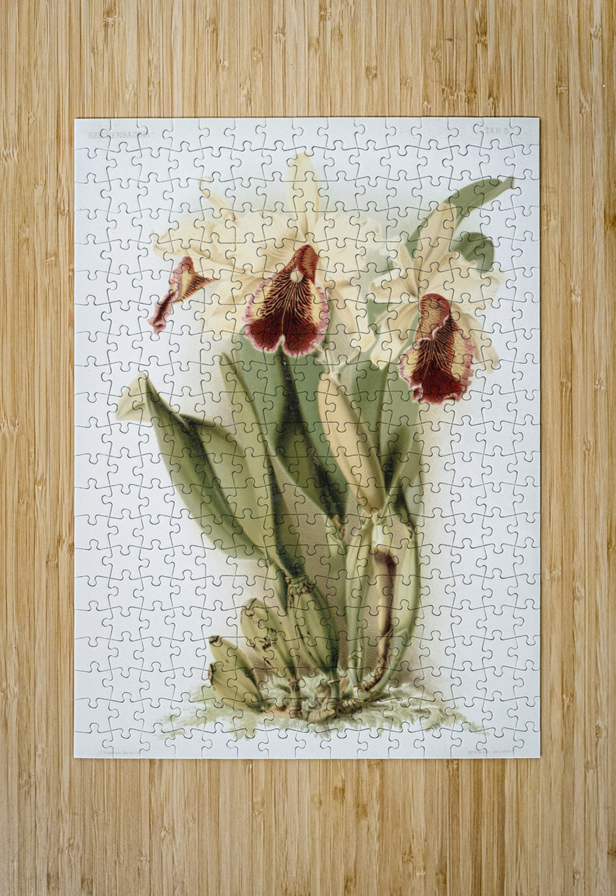 Cattleya dowiana aurea from Reichenbachia Orchids 1888-1894 by Frederick Sander 1847-1920.  IStockHistory com Puzzle printing