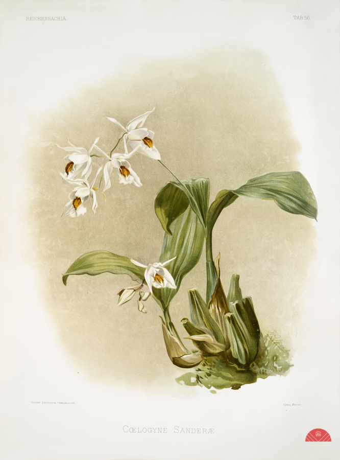 COELOGYNE SANDERæ FROM REICHENBACHIA ORCHIDS 1888-1894 ILLUSTRATED BY FREDERICK SANDER 1847-1920.