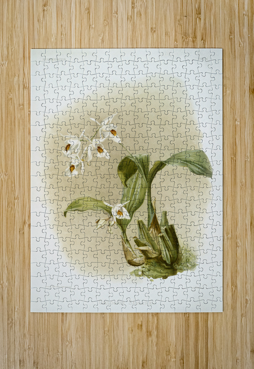Coelogyne sanderæ from Reichenbachia Orchids 1888-1894 illustrated by Frederick Sander 1847-1920.  IStockHistory com Puzzle printing