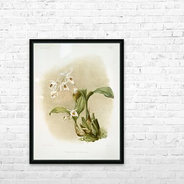 Coelogyne sanderæ from Reichenbachia Orchids 1888-1894 illustrated by Frederick Sander 1847-1920.  Picture Frame Printing