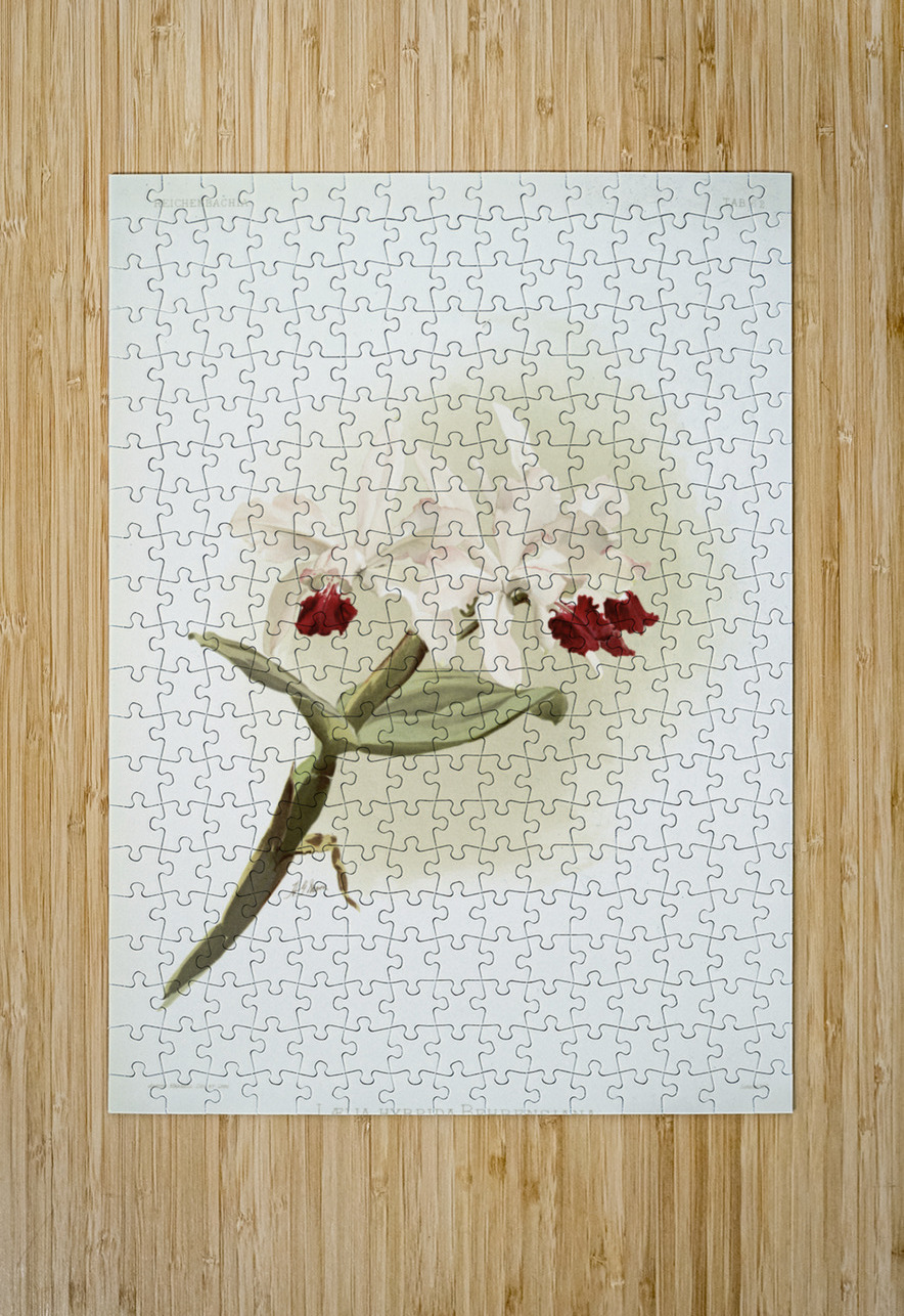 Lælia hybrida behrensiana from Reichenbachia Orchids 1888-1894 illustrated by Frederick Sander 1847-1920.  IStockHistory com Puzzle printing