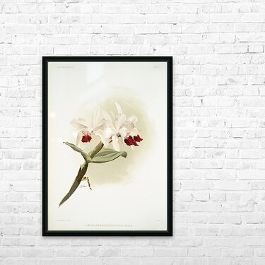 Lælia hybrida behrensiana from Reichenbachia Orchids 1888-1894 illustrated by Frederick Sander 1847-1920.  Picture Frame Printing