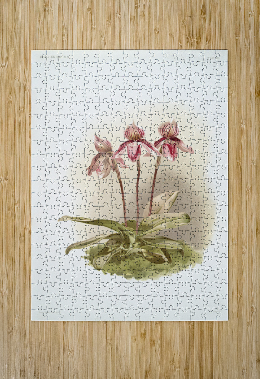 Cypripedium tautzianum from Reichenbachia Orchids 1888-1894 illustrated by Frederick Sander 1847-1920.  IStockHistory com Puzzle