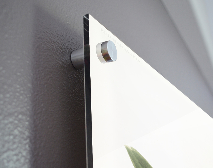 Printed to the edge - Ready to hang - provided with 4 premium polished aluminum stand off ( wall screws and mounting hardware provided ) We suggest a thicker 3/16" acrylic for any size over 42 inches to guarantee a straight acrylic, without curvature