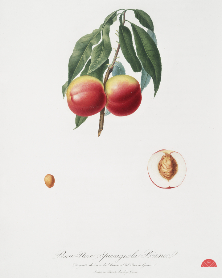 Peach Persica psillidermis from Pomona Italiana 1817 - 1839 by Giorgio Gallesio 1772-1839.