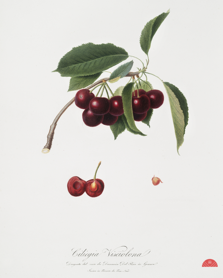 ABOUT THIS ARTWORK: CHERRY CERASUS VISCIOLA FROM POMONA ITALIANA 1817 - 1839 BY GIORGIO GALLESIO 1772-1839.