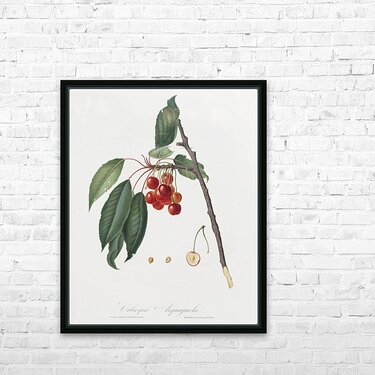 Cherry Prunus avium from Pomona Italiana 1817 - 1839 by Giorgio Gallesio 1772-1839.  Picture Frame Printing