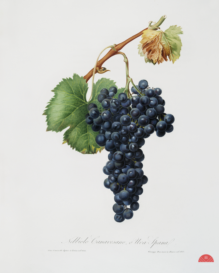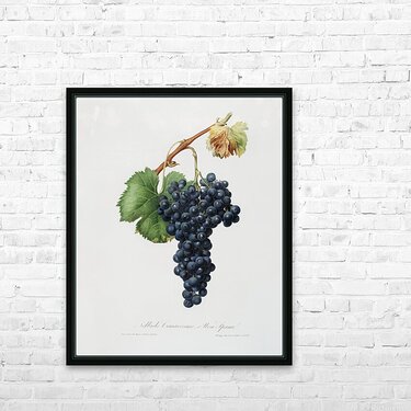 Grape Spanna Vitis vinifera Pedemontana from Pomona Italiana 1817 - 1839 by Giorgio Gallesio 1772-1839.  Picture Frame Printing