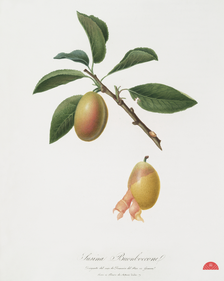 Armenian plum Prunus armeniaca from Pomona Italiana 1817 - 1839 by Giorgio Gallesio 1772-1839.  Picture Frame Printing