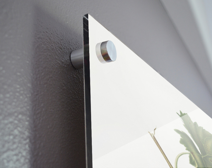 Printed to the edge - Ready to hang - provided with 4 premium polished aluminum stand off ( wall screws and mounting hardware provided ) We suggest a thicker 3/16" acrylic for any size over 42 inches to guarantee a straight acrylic, without curvature