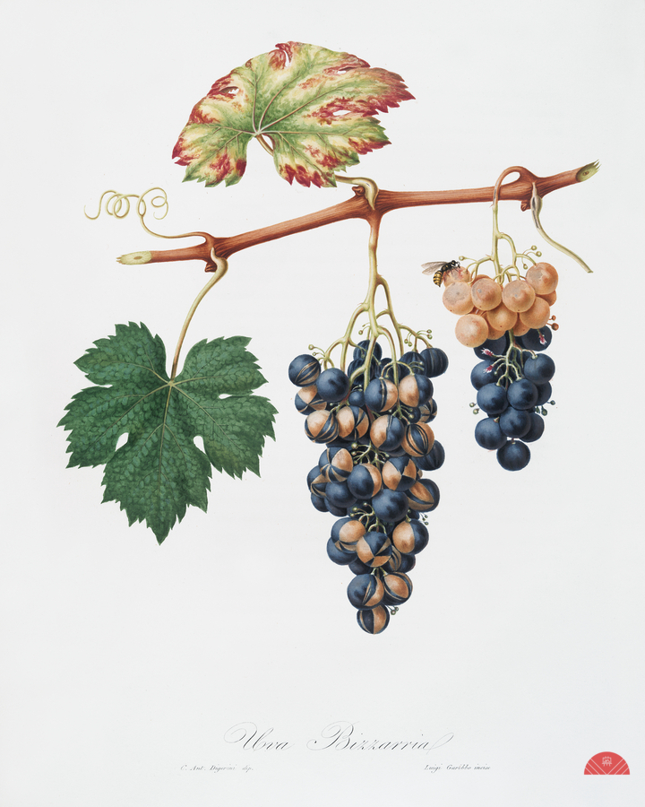 Summer grape Vites vinifera bicolor from Pomona Italiana 1817 - 1839 by Giorgio Gallesio 1772-1839.  Picture Frame Printing
