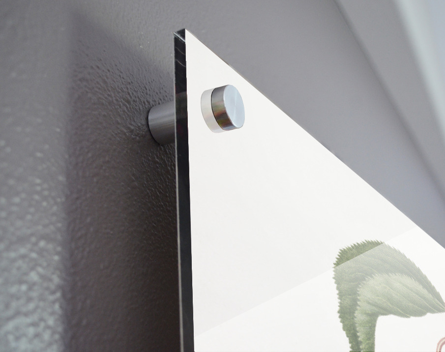 Printed to the edge - Ready to hang - provided with 4 premium polished aluminum stand off ( wall screws and mounting hardware provided ) We suggest a thicker 3/16" acrylic for any size over 42 inches to guarantee a straight acrylic, without curvature