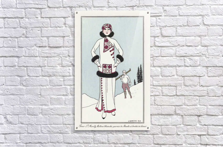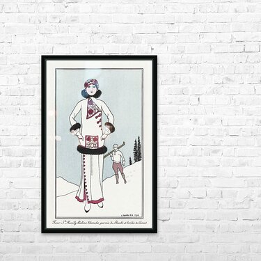 Get this artwork "Costumes Parisiens No. 51: Pour St. Moritz from Journal des Dames et des Modes 1913 fashion illustration by George Barbier. " in a framed print.
