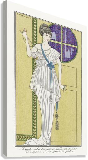 ABOUT THIS ARTWORK: COSTUMES PARISIENS NO. 84: GRANDE ROBE DU SOIR FROM JOURNAL DES DAMES ET DES MODES 1913 FASHION ILLUSTRATION BY GEORGE BARBIER.