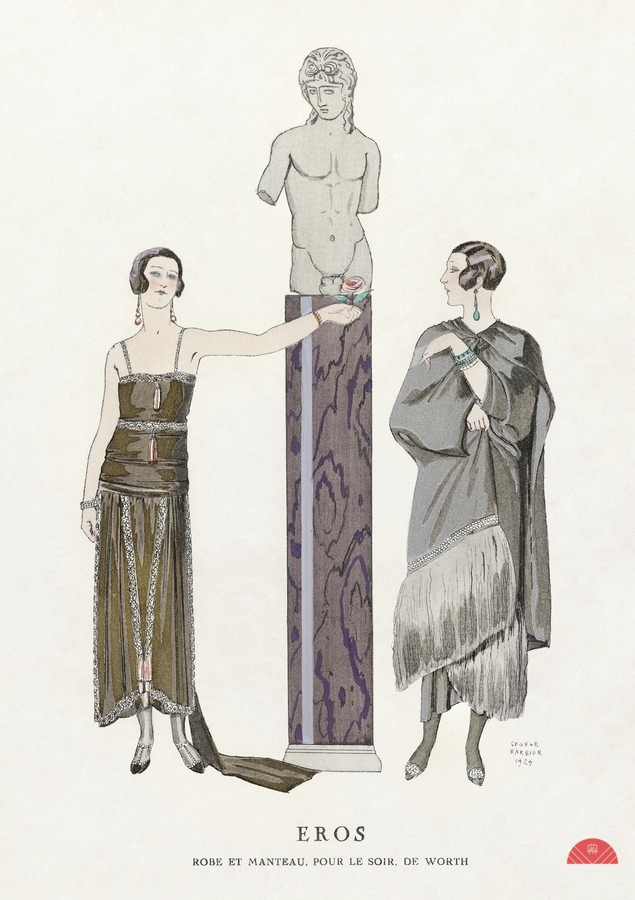 Eros. Robe et manteau pour le soir de Worth 1924 fashion illustration  by George Barbier.  Frame print